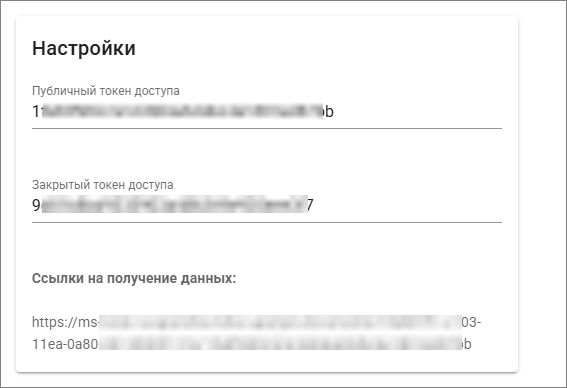 Данный раздел имеет ссылку на получение токенов доступа. Токены необходимо внести в соответствующие поля и сохранить результат.